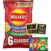 Enjoy a selection of Walkers Classic Variety Multipack Crisps, featuring six convenient 25g packs. Perfect for sharing or snacking on the go, this assortment offers a range of classic flavors to satisfy different tastes. Each pack is portion-controlled, helping you enjoy your favorite crisps without overindulging. Ideal for lunchboxes, picnics, or quick breaks, these crisps provide a tasty and satisfying snack option whenever you need a little boost.
